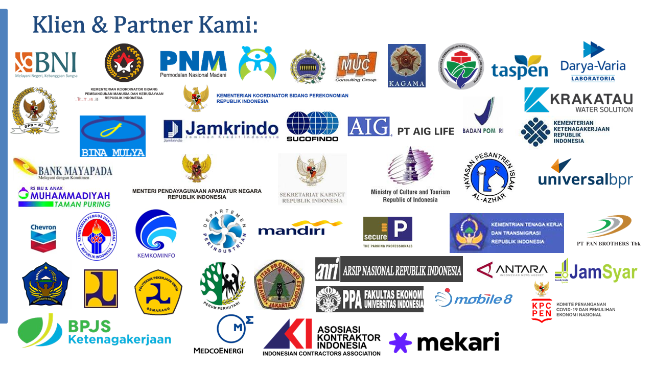 • Termasuk pelatihan bersertifikasi pemerintah, BUMN, dan lembaga donor